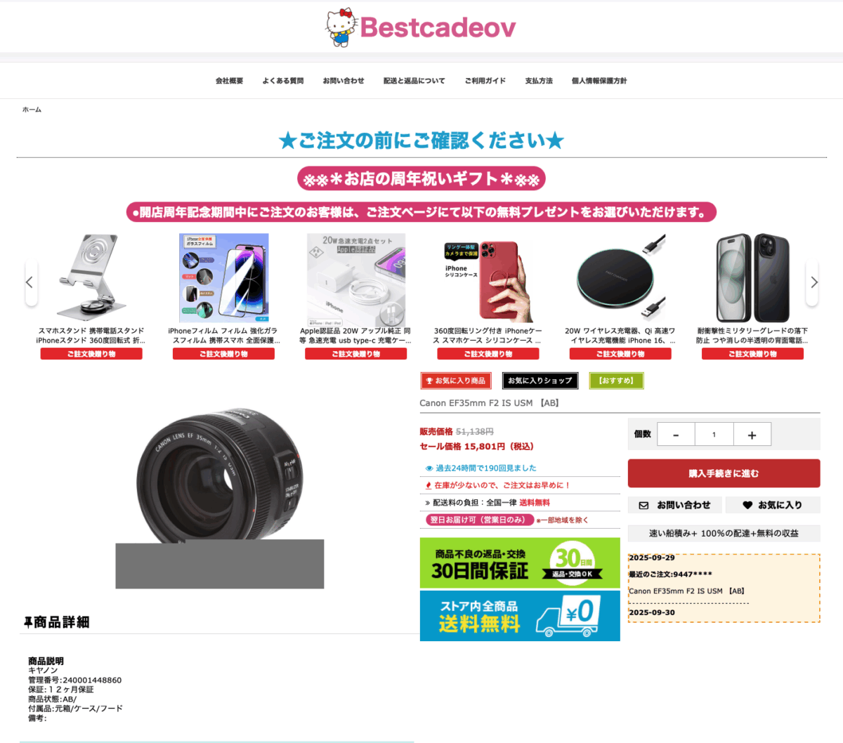 典型的な「不正なショッピングサイト」の例がありましたので、参考にして解説したいと思います。