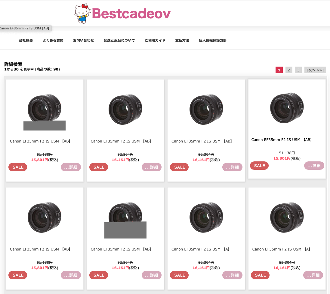 どれも15000円〜。格安です。いや、あり得ない価格です。「中古」という表記も無く、辛うじて「A」「AB」といったランク表示のみ。「販売価格51,138円」「セール価格15,801円」という表記からも「新品だと思った」と言われてもしかたありません。