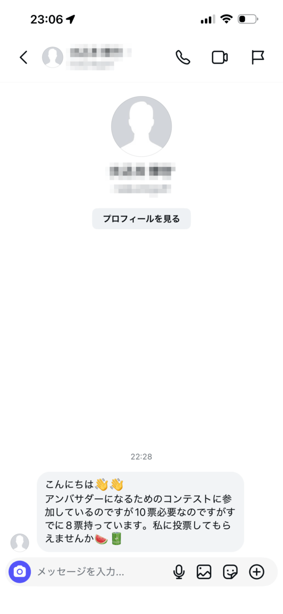 早速私にメッセージが届き、上記の内容です。その後すぐにプロフィールはロックされ閲覧不可の状態となりました。