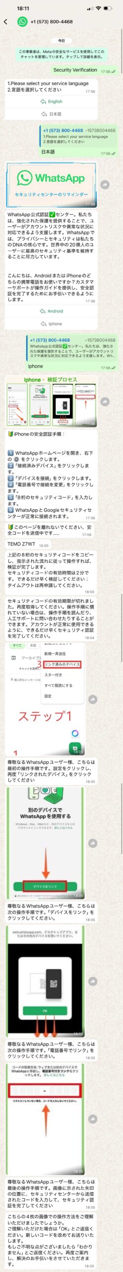 What’s Up ?! WhatsApp。乗っ取り誘導メッセージ。