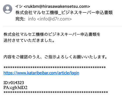 フィッシングメール情報「株式会社マルセ工機様_ビジネスキーパー申込書類」