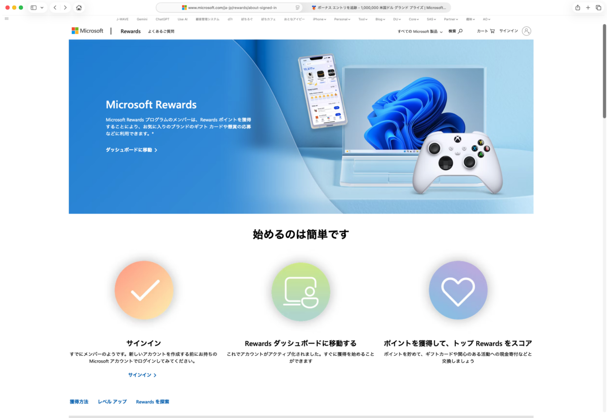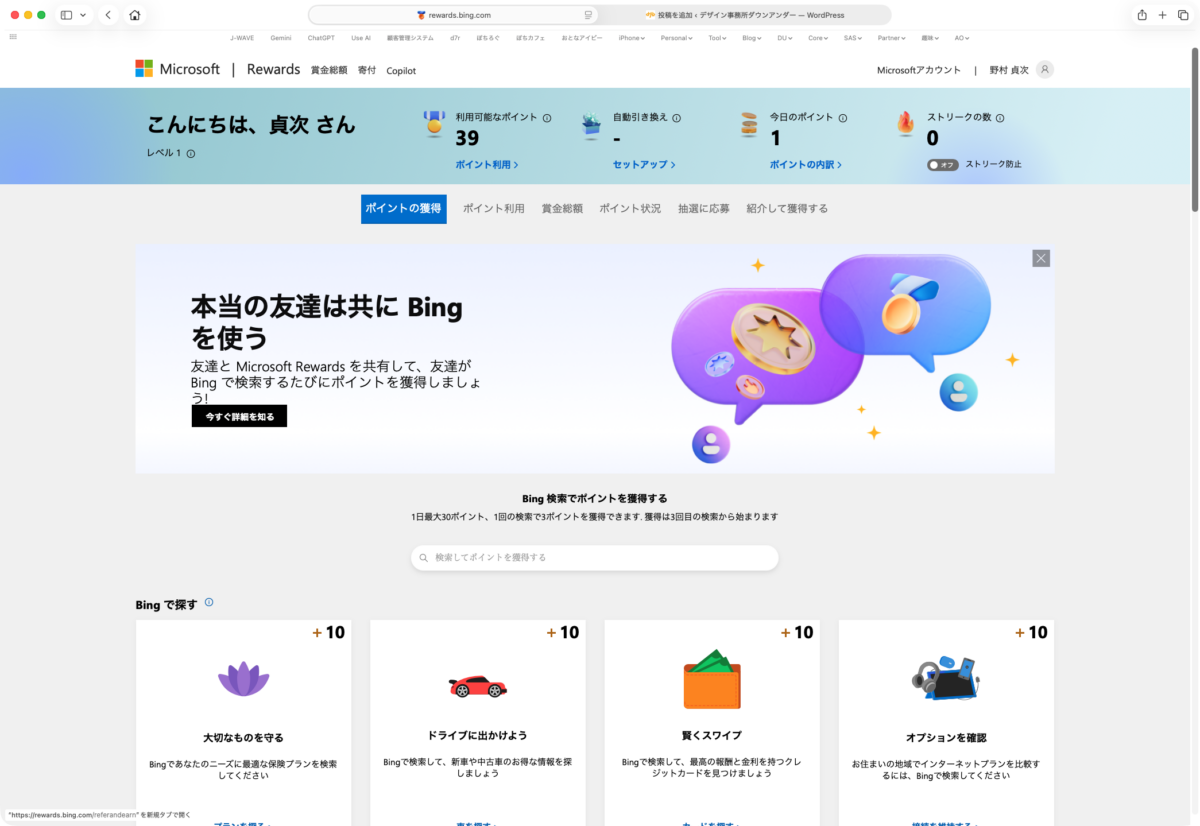 - URLもrewards.bing.comと、正規のMicrosoftドメインです。