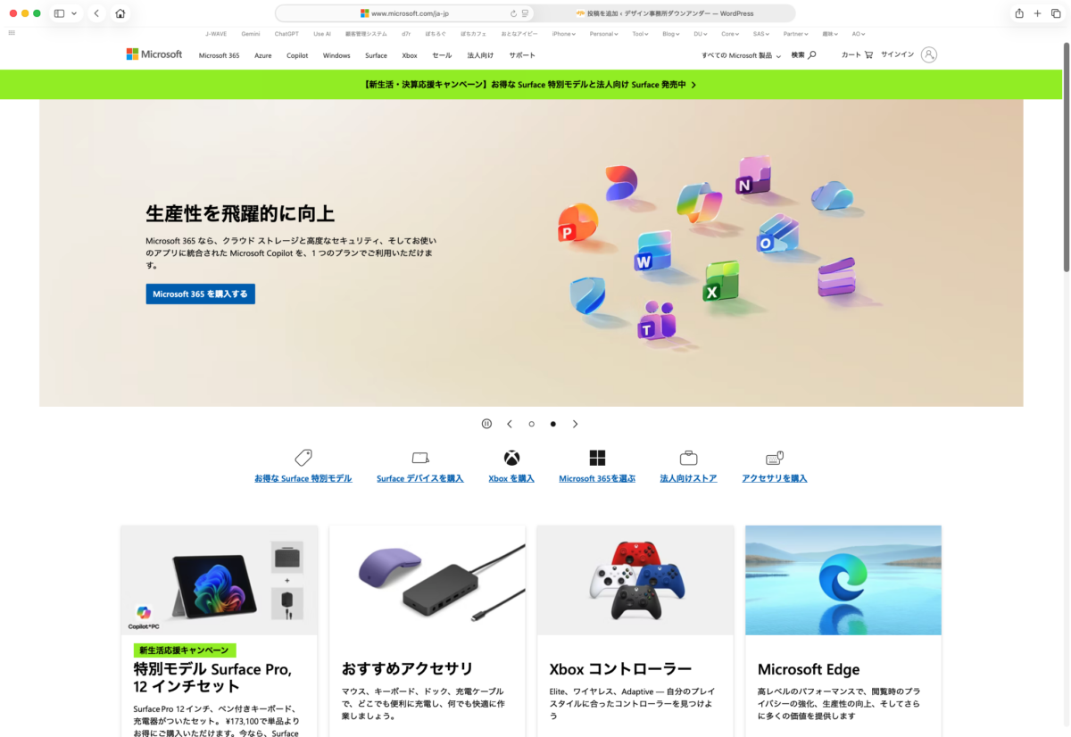 今度はMicrosoftの公式サイトにアクセスしてみます。