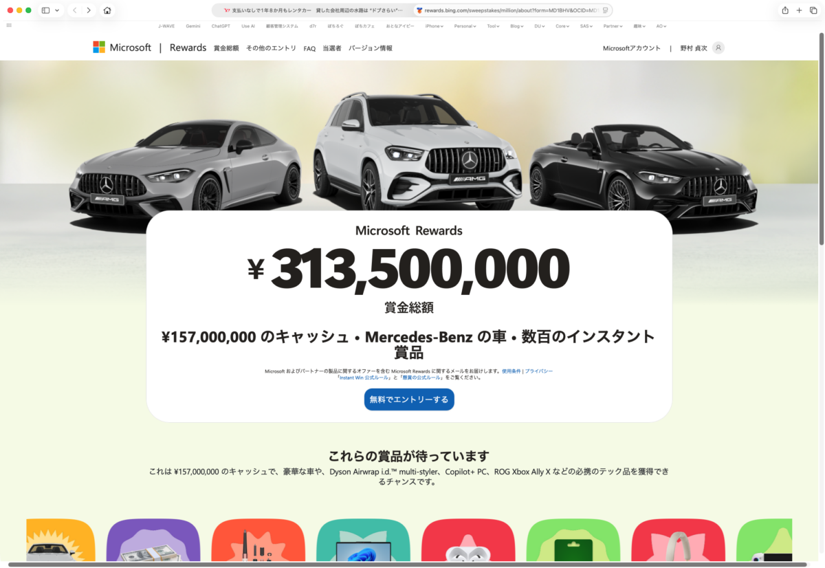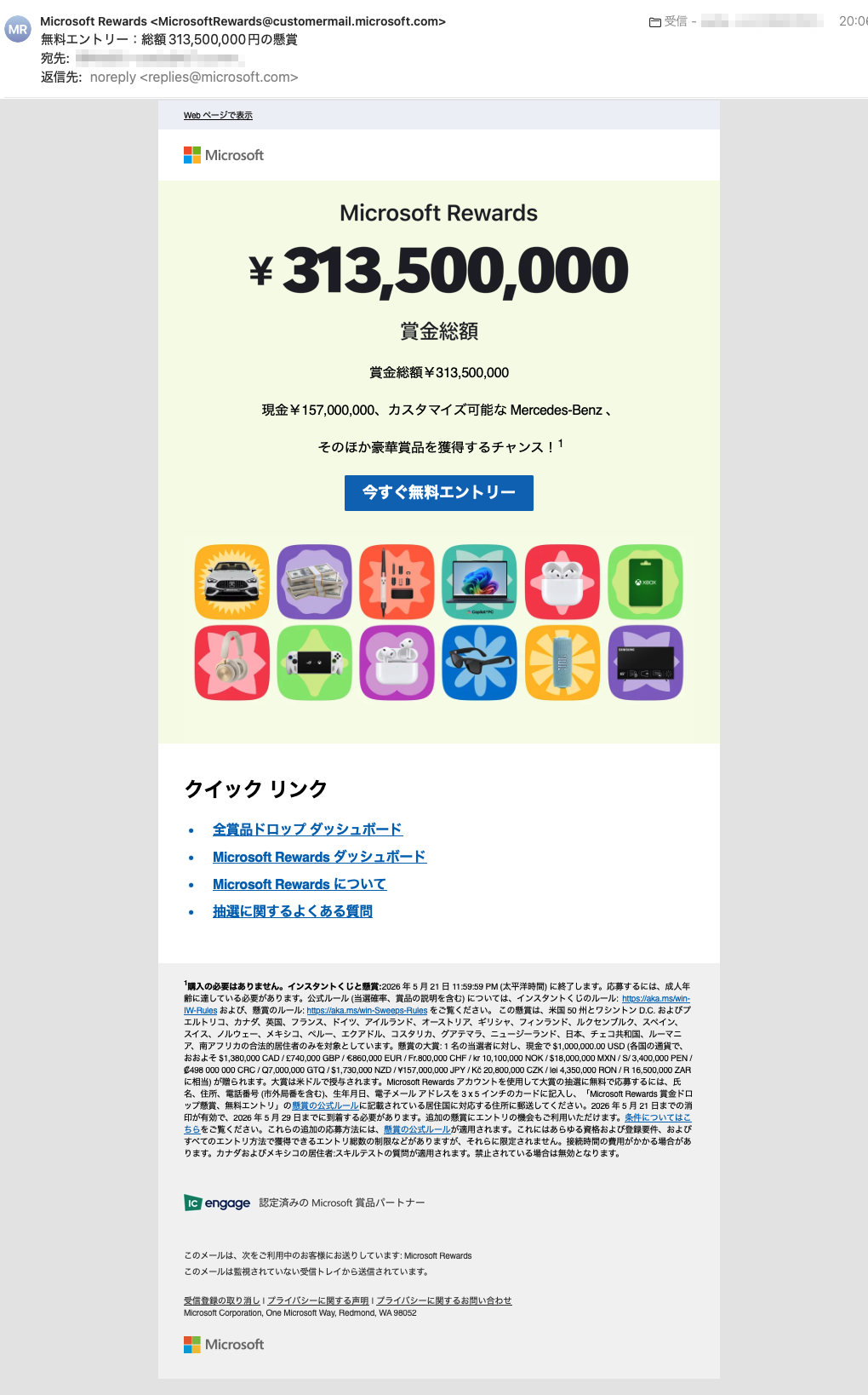 あまりにも怪しい「Microsoft Rewards」のメールが届きました。賞金総額3億円!?
